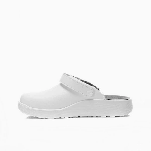 Blütenweißer Berufsclog für einen strahlenden und sicheren Auftritt auf rutschigen Böden – dafür haben wir den neuen LEVY white ESD OB entworfen. Dieser Clog der Serie ELTEN-CLOGS ist in den Größen 40 bis 48 lieferbar. Durch die leichte und formbeständige Mikrofaser ist der LEVY alles andere als ein Schwergewicht: Angenehm schmiegt sich dieser Clog an den Fuß, ohne ihn am Atmen zu hindern – schließlich ist er mit einem atmungsaktiven Futter aus dem Hause Sanitized® ausgestattet. Zusätzlichen Passkomfort bietet ein Fersenriemen, der sich, wenn gewünscht, auch umklappen lässt, so dass der LEVY vom ESD-fähigen Clog zur Pantolette wird. Das Modell verfügt über keinen Zehenschutz, dafür aber über die bestmögliche Rutschhemmung – dies garantiert die abriebfeste, gegen viele Substanzen resistente MONO-PU Sohle.