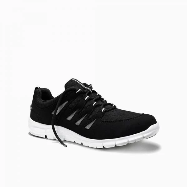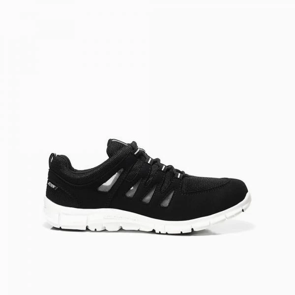 Der APACHE black-white Low O1 verleiht echtes Barfußgefühl! Grund dafür ist eine ultraleichte Laufsohle aus expandiertem Ethylenvinylacetat (EVA). Die Sohle XL Extralight® kommt bei dem neuen Berufsschuh-Modell zum Einsatz und überzeugt neben der Leichtigkeit auch noch mit rutschhemmenden Eigenschaften und viel Flexibilität. Dafür sorgt eine spezielle Profilstruktur. Außerdem schützen zusätzliche Gummieinheiten an den richtigen Stellen vor vorzeitigem Abrieb. Die Tatsache, dass der APACHE ohne Durchtritthemmung und Zehenschutzkappe auskommt, macht die Leichtigkeit zu einer endgültig runden Sache. Für Jede Menge Tragekomfort sorgen das Obermaterial aus Mikrofaser und Meshmaterial sowie das atmungsaktive Innenfutter – ausgeglichenes Schuhklima garantiert. Der sportlich-schlanke Halbschuh ist komplett lederfrei, ESD-zertifiziert und in den Größen 40 bis 48 zu haben.