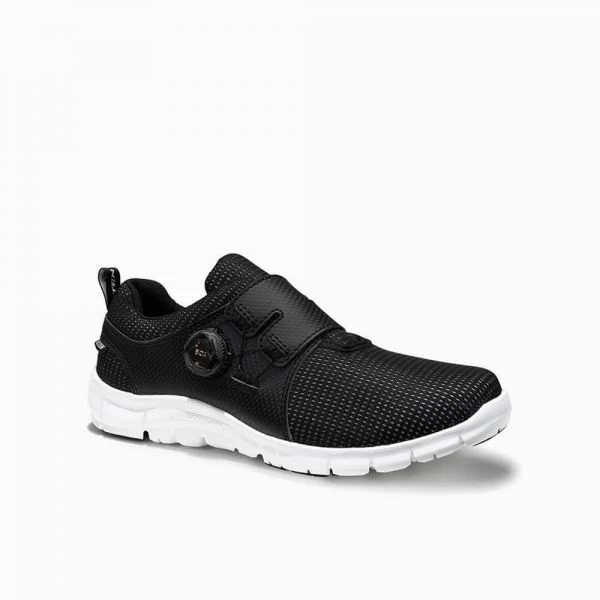 Barfußgefühl beim Laufen: Der KIOWA BOA® black Low O1 macht es möglich! Dank der extrem leichten und weichen Laufsohle XL Extralight® aus expandiertem Ethylenvinylacetat (EVA) erwartet den Träger Tragekomfort auf einem anderen Level. Außerdem ist der sportliche Berufshalbschuh weder mit Zehenschutzkappe, noch mit Durchtritthemmung ausgestattet – Leichtigkeit garantiert! Die rutschhemmende Sohle punktet mit zusätzlichen Gummieinheiten, die vor vorzeitigem Abrieb schützen, sowie Flexkerben für größtmögliche Beweglichkeit. Das Obermaterial des bequemen Berufsschuhs besteht aus Mikrofaser und Meshmaterial, dass gemeinsam mit dem atmungsaktiven Innenfutter für ein gutes Schuhklima sorgt. Ein weiteres Highlight ist das BOA® Fit System, durch das der Schuh im Handumdrehen perfekt am Fuß sitzt. Der praktische Drehverschluss macht ein müheloses Anziehen möglich und Schnürsenkel überflüssig. Erhältlich ist der komplett lederfreie Berufsschuh im Größengang 40 bis 48.