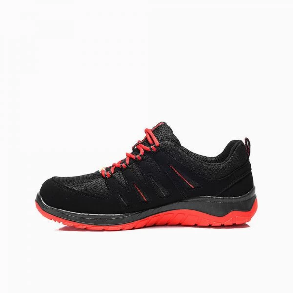Der MADDOX black-red Low ist ein sehr beliebter Sicherheitsschuh. Nun gibt es ihn auch als Berufsschuh – ganz ohne Schutzkappe! Mit seinem Obermaterial aus hydrophobiertem Textilmaterial und Mikrofasern sieht er nicht nur flott aus, sondern ist auch besonders leicht. Ein besonders angenehmer Tragekomfort ist gegeben durch das High-Tech Material Infinergy® von BASF im Sohlenkern der TPU/PU Laufsohle MAXXIMO. Das innovative Dämpfungsmaterial nimmt die aufgewendete Energie beim Laufen auf und gibt einen Großteil davon wieder an den Träger zurück. Gelenke und Sehnen werden dabei langfristig geschont. Hinzu kommt das atmungsaktive und hautfreundliche Textilinnenfutter, welches für ein angenehmes Schuhklima sorgt. Auch Allergiker müssen nicht zurückschrecken, der Schuh ist komplett lederfrei – außerdem ist er SRC und ESD zertifiziert! Verfügbar ist der MADDOX black-red Low ESD O2 im Größengang 36 bis 49.