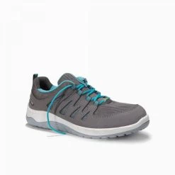 Der Schuh ist aus Obermaterialien aus Mikrofaser und Textilmaterial gefertigt. Das macht den Schuh leicht und widerstandsfähig. Die Senkel sind auffallend türkisblau und runden das Profil des Schuhs ab. Doch neben der Optik wird auch die Sicherheit groß geschrieben. Eine Stahlkappe und eine metallfreie Durchtritthemmung schützen die Damenfüße vor den Gefahrenquellen auf der Arbeit. Der lederfreie und ESD-fähige Sicherheitsschuh aus der WELLMAXX Serie ist in den Größen 35 bis 42 verfügbar.