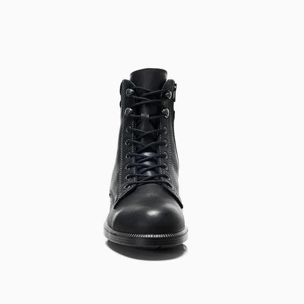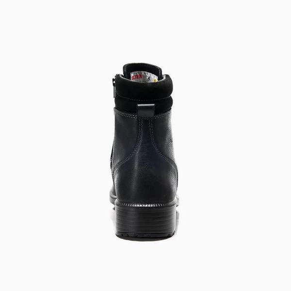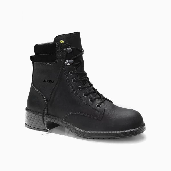 Mit dem NIKOLA black Mid ESD S2 aus der ELTEN BUSINESS Reihe präsentiert Fußschutzexperte ELTEN einen schicken Damen-Sicherheitsschnürstiefel, der sowohl im Büro als auch in der Produktion oder in der Lagerhalle eine gute Figur macht. Der schwarze Stiefel aus robustem Rindleder ist widerstandsfähig und zusätzlich mit einer Zehenschutzkappe aus Stahl versehen, so dass Gefahren für den Vorfußbereich erfolgreich abgewehrt werden können.