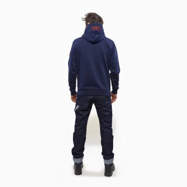 Der Navy-farbene ELTEN Hoodie aus der Retro Collection ist der Inbegriff sportiver Streetwear. Er verbindet den hohen Tragekomfort eines Hoodies mit dem Retro-Design des J. van Elten Logos. Der Hoodie hat eine besonders komfortable Passform, eine normale Länge ud elastische Bündchen. Erhältlich ist der Hoodie mit Rundhalsausschnitt bis zur Konfektionsgröße 4XL.