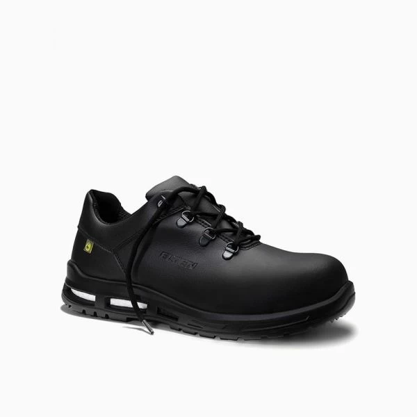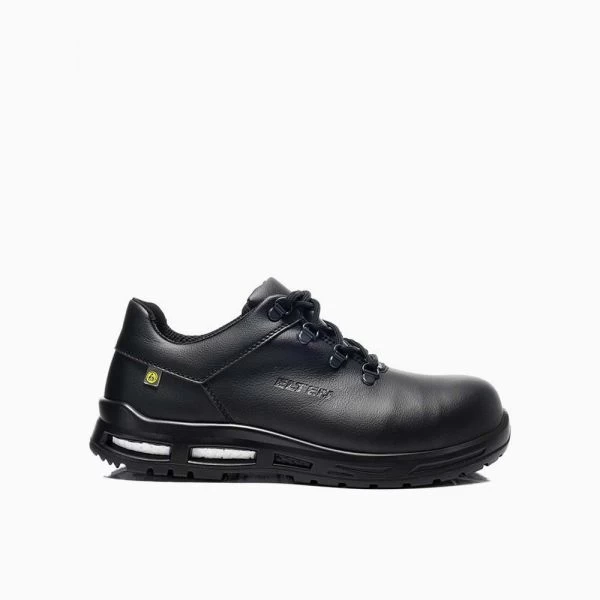Die hydrophobierte Mikrofaser des Schaftes ist zudem sehr strapazierfähig und das atmungsaktive Textilfutter bewirkt ein gutes Balancing des Schuhklimas. Damit der Fuß nicht durch spitze Gegenstände am Boden verletzt wird, ist in die Sohle ein metallfreier Durchtrittschutz eingearbeitet. Eine Zehenschutzkappe aus Kunststoff schützt die Zehen, während die Profilsohle WELLMAXX TRAINERS MONO verlässlich rutschhemmend wirkt – verbürgt durch das SRC-Prüfzeichen. Der ESD-fähige BRANDON XXTM black Low ESD S3 ist lederfrei und eignet sich somit auch für Gerbstoffallergiker.