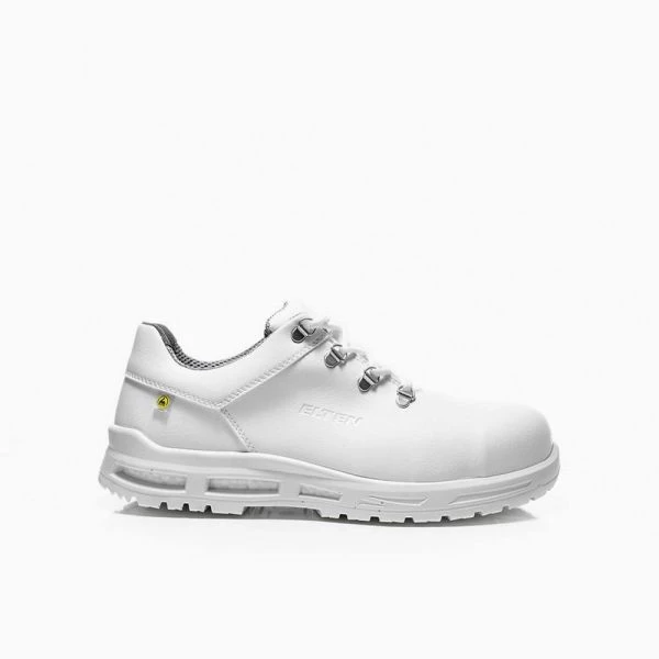 Der BRANDON XXTM white Low ESD S3 bietet leichtgängigen Fußschutz und bringt seinen Träger sicher durch den stressigen Berufsalltag. Klar, durch die weiße Farbgebung eignet er sich besonders für einen Job in Pflege und Krankenhaus oder bei der Verarbeitung von Lebensmitteln. Und er bringt dafür auch die notwendigen Eigenschaften mit: das Obermaterial aus hydrophobierter Mikrofaser ist schnell trocknend und abriebfest, das Innenfutter aus atmungsaktivem Textil überzeugt durch hohe Schweißaufnahme und -abgabe, die Zehenschutzkappe aus Kunststoff bietet Schutz gegen Stoßeinwirkungen, der metallfreie Durchtrittschutz verhindert das Eindringen von spitzen oder scharfkantigen Gegenständen am Boden, und der Sohlenkern aus Infinergy® von BASF sorgt für hervorragende Dämpfung, was bei langem Gehen und Stehen eine echte Wohltat ist. Weil hier die Laufsohle WELLMAXX TRAINERS MONO verarbeitet wurde, die wie der Name andeutet eine Einschichtensohle ist, macht das den BRANDON XXTM white Low ESD S3 noch mal ein ganzes Stück leichter. So was beflügelt doch im stressigen Berufsalltag! Zu haben ist der SRC-zertifizierte und ESD-fähige Sicherheitsschnürstiefel im Größengang 36 bis 48.