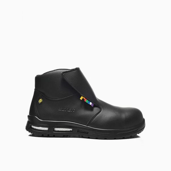 Komplett metall- und lederfrei in der Ausstattung, vereint dieser Sicherheitshalbschuh mit dem hydrophobierten Obermaterial aus Mikrofaser robustes Design mit individueller Klasse und einem besonderen, direkt ins Auge fallende Spezial-Feature: die kleinen, farbig unterschiedlichen Mini-Etiketten am Schaftrand. Damit kann man den BRICE XXTM black Mid ESD S3 ganz leicht markieren, und den Schuhträger auf den ersten Blick für andere kenntlich machen. Sinnvoll für die Arbeit in elektronisch sensiblen Einsatzbereichen. So könnte man zum Beispiel Schuhe mit dem Farb-Etikett blau für den Sicherheitsbereich A markieren, Schuhe mit rotem Etikett für den Sicherheitsbereich B. Und so weiter. Gut, dass der BRICE XXTM black Mid ESD S3 bei der Gelegenheit auch echte ESD-Fähigkeit mitbringt. Aber auch sonst bietet der Sicherheitsschuh mit der imposanten Silhouette alles, was professioneller Fußschutz braucht. Eine Zehenschutzkappe aus Kunststoff, textilen Durchtrittschutz, eine Einschichten-Laufsohle namens WELLMAXX TRAINERS MONO, atmungsaktives Textilfutter und einen Sohlenkern aus Infinergy® von BASF. Übrigens: bestellbar ist der SRC-zertifizierte Sicherheitshalbschuh in den Größen 36 bis 48.