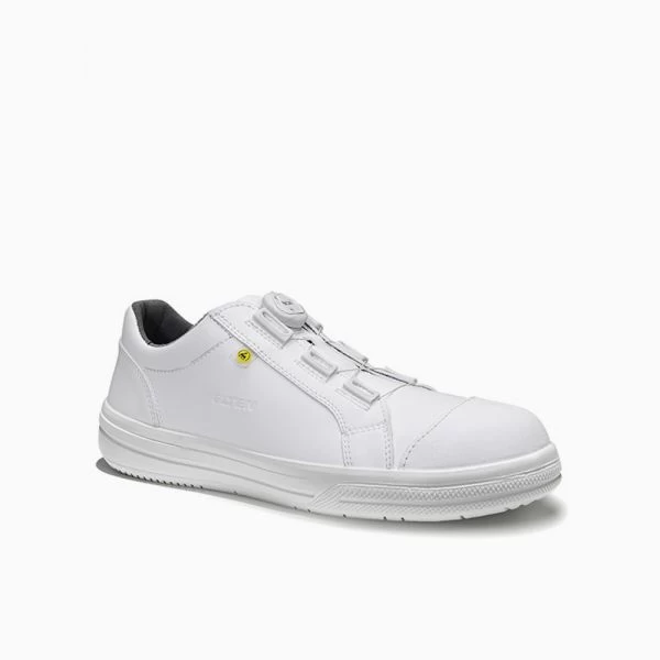 Ein auch in Weißbereichen einsetzbarer Sicherheitshalbschuh ist der schicke GHOST BOA® Low ESD S3 aus der Serie L10 in Sneaker-Optik. Das Obermaterial aus hydrophobierter Mikrofaser ist wasserabweisend und mit der SRC zertifizierten MONO-PU Sohle rutscht der Träger, auch wenn es mal hektisch wird, nicht so schnell auf glatten und feuchten Böden aus. Ein weiterer Pluspunkt: Der GHOST verfügt über das BOA® Fit System, das nicht nur ein schnelles An- und Ausziehen sondern auch eine perfekte Passform gewährleistet. Der ESD-fähige Schuh ist mit einer Stahlkappe sowie einer metallfreien Durchtritthemmung ausgestattet. Der abriebfeste Spitzenschutz sorgt dafür, dass dieser sehr moderne Sicherheitsschuh lange Freude bereitet. Ein atmungsaktives Textilfutter rundet den in den Größen 35 bis 48 erhältlichen Schuh ab.