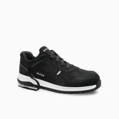 Der Journey black Low ESD S3 aus der E-Track Serie von ELTEN besticht durch seine dezent-sportliche Optik in tiefem Schwarz – ein echtes Bekenntnis, für jeden, der es etwas dunkler mag. Das wasserabeiwesende hydrophobierte Nubukleder ist sehr robust und widerstandsfähig. Der Sicherheitshalbschuh besticht aber nicht nur durch sein modernes Äußeres, sondern auch mit seinen Sicherheitseigenschaften. Die Stahlkappe schützt erfolgreich vor Verletzungen der Zehen, eine metallfreie Durchtritthemmung vor Gefahren von unten. Die besonders rutschhemmende Gummi/PU-Laufsohle sorgt für sicheren Halt auf glatten und rutschigen Industrie- und Hallenböden. Der Journey ist im Größengang 40 bis 48 erhältlich.