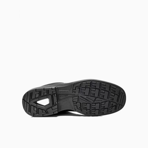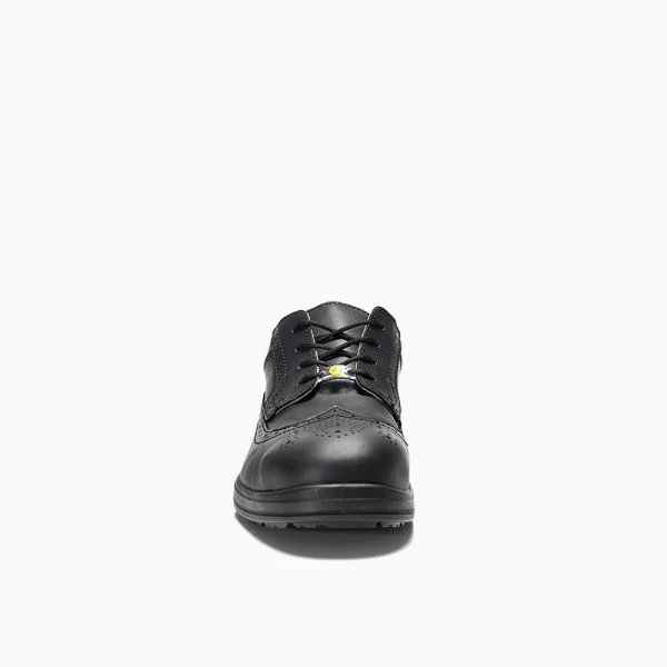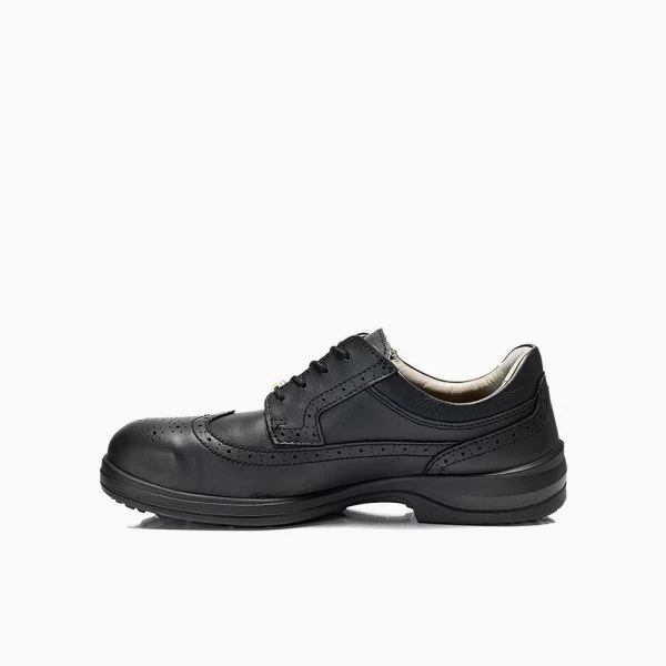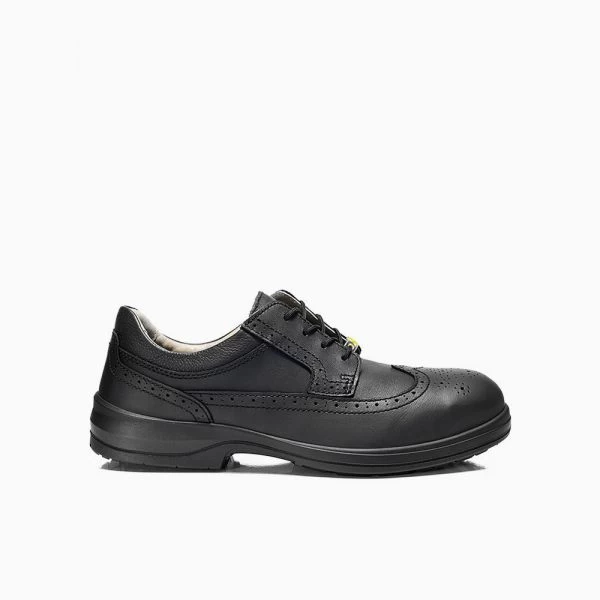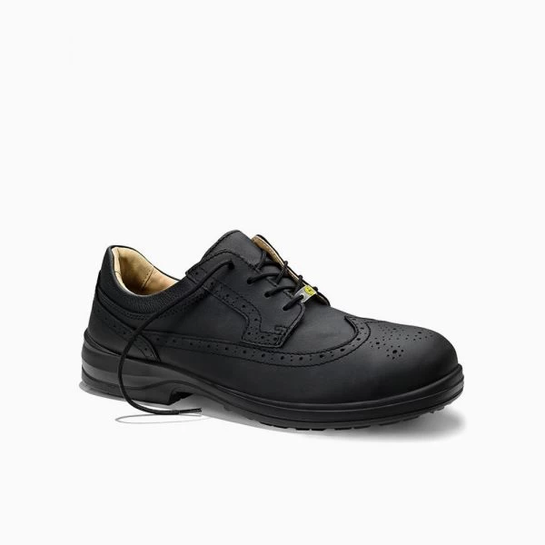 Als eleganter schwarzer Business-Sicherheitsschuh mit Lederausstattung ist der OFFICER XXB ESD S2 der ideale Allrounder für verschiedenste Anforderungen. Besonders edel: das kontrastierende helle Lederfutter. Die SRC zertifizierte Mono-PU Laufsohle ist vielfältig einsetzbar und sorgt mit den abgeschrägten T-Profilrippen für einen standfesten Auftritt. Ein Extra an Bequemlichkeit entsteht durch den Sohlenkern aus dem Material Infinergy® von BASF − kleinen Schaumstoffperlen, die optimal rückfedern. Hierdurch wird dem Träger mit jedem Schritt Energie zurückgegeben und die müden Gelenke können sich auf Entlastung freuen. Der ESD-fähige Sicherheitsschuh verfügt zudem über eine Zehenschutzkappe aus Stahl und ist erhältlich in den Größen 39 bis 49.
