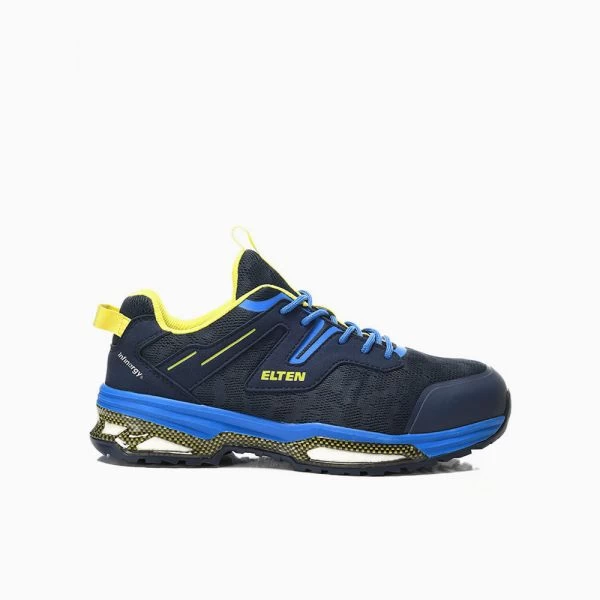Unsere WELLMAXX ENERGETIC sind da. Aufbauend auf unserer WELLMAXX Serie, gehen diese Schuhe einen Schritt weiter in Sachen Energierückgewinnung beim Laufen. So wie beim YORK XXE blue Low ESD S1. Verantwortlich dafür sind Infinergy®-Elemente von BASF im Vor- und Rückfußbereich. Wenn der Fuß aufsetzt, dehnen sich die unzähligen Schaumpartikel aus und ziehen sich wieder zusammen, das gleiche passiert auch im Bereich des Fußballens, so dass die Hebelkraft für den nächsten Schritt sinnvoll unterstützt wird. Erreicht wird das durch zusätzliche TPU Designelemente, die einen dominanten Teil der Zwischensohle aus EVA bilden. Weitere Eigenschaften dieses Sicherheitsschuhs: Obermaterial aus Mikrofaser und Mesh, atmungsaktives Innenfutter aus Textil, Zehenschutzkappe aus Stahl. Bei der Laufsohle aus GUMMI ist dank der gut durchdachten Profilierung die Rutschhemmung hervorragend. Dank einer 8 mm Absatzkante steht man sicher auf Leitersprossen und kann sicher sein, nicht abzurutschen. Einmal in diesen Schuhen drin, fühlt man auch gleich den Komfort und die Stabilität, die diesen Sicherheitshalbschuh zu einer angenehmen und sportlichen Angelegenheit machen. Komplett lederfrei ist der ESD-fähige Schuh auch, bestellbar in den Größen 40 bis 48.