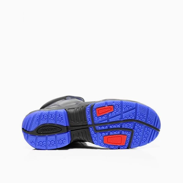 Der REACTION blue Mid ESD S3 hält was er verspricht – der Sicherheitsstiefel reagiert in jeder Situation angemessen auf die Gefahren. Dafür ist es bestens ausgestattet: Stahlkappe, metallfreie Durchtritthemmung, SRC-zertifizierte Laufsohle und ein abriebfester Spitzenschutz. Mehr geht nicht.