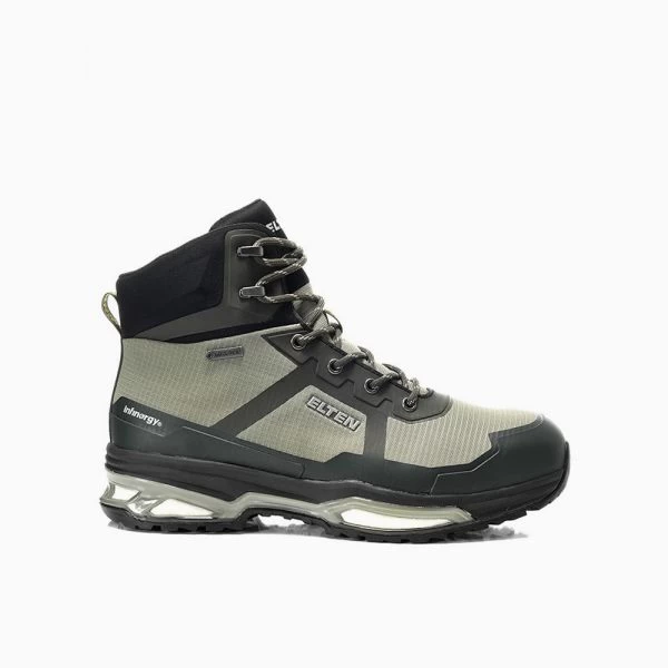 Mit dem BENTE XXE GTX green Mid ESD S3 ist bei einem Einsatz in anspruchsvollen Outdoor-Bereichen für alles gesorgt, was Füße draußen sicher macht. Der ESD-fähige Sicherheitsstiefel aus der WELLMAXX Serie ist so ausgestattet, dass er für rutschige oder harte Böden und nasskaltes Wetter immer Lösungen parat hält. Schon das Laufen wird zur Wohltat, denn Infinergy®-Elemente von BASF im Fersen- und Vorfußbereich der Zwischensohle sorgen dafür, dass der Rebound-Effekt des Partikelschaums während der gesamten Bewegung des Fußes zum Tragen kommt. Dank Zehenschutz aus Stahl und metallfreiem Durchtrittschutz sind auch Gefahren von oben oder unten nichts, worüber sich der Träger Gedanken machen muss. Auch Wind und Wetter können den Füßen nichts anhaben, weil die Füße nicht nur sicher sind, sondern auch wasserdicht und atmungsaktiv verpackt, was an hydrophobiertem Obermaterial und GORE-TEX Extended Comfort Footwear liegt. Zählt man noch die GUMMI/EVA Sohle dazu, die eine jederzeit hervorragende Rutschhemmung beisteuert, ergibt sich hier ein Fußschutz, der gleichzeitig unangenehmen Witterungen und Bodenbeschaffenheiten Paroli bietet. Erhältlich ist er in den Größen 40 bis 48.