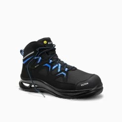 Mit dem FRY XXG Pro GTX black-blue Mid ESD S3 HI CI haben wir einen äußerst strapazierfähigen Sicherheitsstiefel im Angebot. Der ist überall dort, wo die Gefahr von herabfallenden Objekten oder Stoßunfällen droht, genau in seinem Element. Denn seine Zehenschutzkappe aus Kunststoff hält einer Aufprallenergie von 200 Joule stand, das entspricht ungefähr einem 20-Kilo-Gewicht, das aus einem Meter Höhe herunterfällt. Wer Füße nicht nur schützen, sondern auch entlasten will, kümmert sich zudem um eine gute Dämpfung. Darum wurde Infinergy® von BASF in den Sohlenkern integriert, das schont Muskeln und Gelenke und bewirkt, dass das Laufgefühl konstant dynamisch bleibt. Wer noch weiter geht, der spendiert diesem ESD-fähigen Stiefel eine Wind-und-Regen Kombination, die unangenehme Witterungen von den Füßen fernhält: außen hydrophobierte Mikrofaser und hydrophobiertes Textil, innen GORE-TEX Performance Comfort Footwear. Das sorgt dafür, dass Nässe draußen bleibt, Atmungsaktivität aber immer gegeben ist. TPU-Spitzenkappe und textiler Durchtrittschutz bewahren vor frühzeitigem Verschleiß bzw. Durchtrittgefahr. Und die GUMMI/PU Sohle WELLMAXX Grip bietet exzellente Rutschhemmung, bei gleichbleibend hoher Flexibilität. Erhältlich in den Größen 39 bis 48.