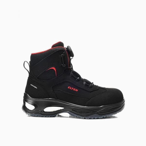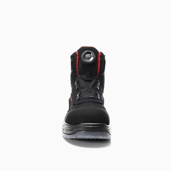 Dieser Stiefel sorgt für einen regelrechten Powerkick auf der Arbeit: verantwortlich für diesen Energieschub beim OWEN BOA® black Mid ESD S2 ist das Infinergy®-Material von BASF in der Laufsohle. Die Schaumstoffpartikel dehnen sich beim Gehen aus und ziehen sich wieder zusammen, und das sorgt für ein echt dynamisches Laufgefühl. Absolut top ist auch das Obermaterial aus Mesh und hydrophobierter Mikrofaser. Daran perlt jede Art von Feuchtigkeit ab, zum Beispiel Regen, aber auch Flüssigkeiten am Boden werden zuverlässig abgewehrt. Dank des atmungsaktiven Textilfutters braucht man auch keine Angst vor Schwitzflüssigkeit im Inneren zu haben. Und das BOA® Fit System macht kurzen Prozess mit An- und Ausziehen der Stiefel. Ein Dreh – und der Stiefel sitzt superfest. Ist dabei absolut bequem und bietet tollen Laufkomfort. Die Sohle aus TPU und PU sorgt für spitzenmäßige Rutschhemmung auf glatten Böden, da braucht man sich also auch keine Sorgen zu machen. Und durch die Kunststoffkappe bleibt der Zehenbereich dauerhaft vor Stoßgefahren geschützt. Bestellen kann man die ESD-fähigen Stiefel in den Größen 40 bis 48.