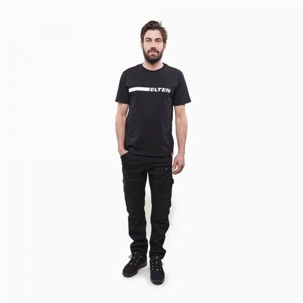Schwarz ist In und gehört zur Grundausstattung jeder Damen- und Herrengarderobe. Das schwarze ELTEN T-Shirt aus der Casual Collection punket vor allem durch das besonders tragefreundliche Design mit weißem Logoschriftzug auf der Brust. Locker geschnitten und mit normaler Länge passt es gut zu Jeans oder Sneakers. Zu haben ist das T-Shirt mit Rundhalsausschnitt in den Größen XS bis 3XL.